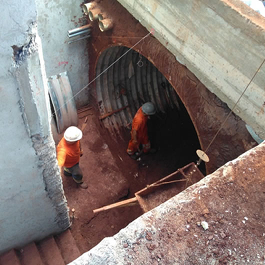 A Terra Mova é uma empresa especializada em realizar travessias subterrâneas utilizando o método não destrutivo “Tunnel Liner”, além de montar estruturas metálicas da Armco Staco a céu aberto.